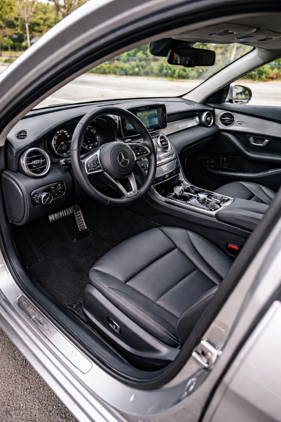 ベンツの上質なレザーシート。その縫い目や座面の隙間に溜まったホコリや食べカスは、掃除機で吸うだけで劇的に印象が変わります。